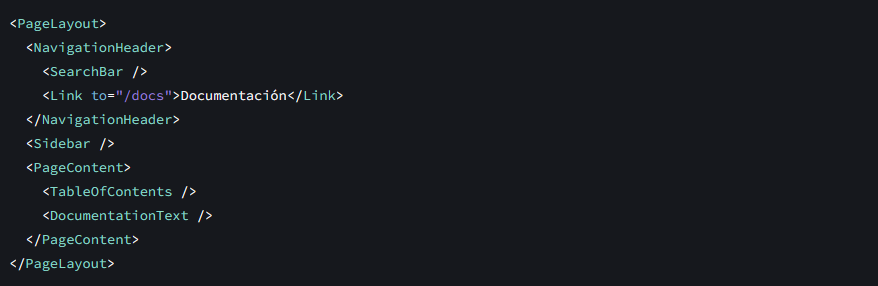 De la misma forma que con las etiquetas HTML, puedes componer, ordenar y anidar componentes para diseñar páginas completas. Por ejemplo la página de documentación que estás leyendo está hecha de componentes de React: